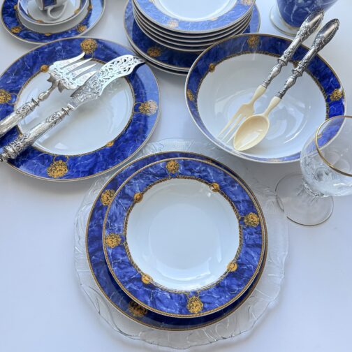 Розкішна колекційна порцеляна Prince de Monaco — серія Saphir ! Лімітована серія тонкої французької порцеляни, випущена на честь заручин князя Реньє III і Грейс Келлі – одного з найзнаковіших союзів XX століття. Елегантний сапфірово-синій борт з мармуровим ефектом, витончений орнамент і чисто-білий центр.