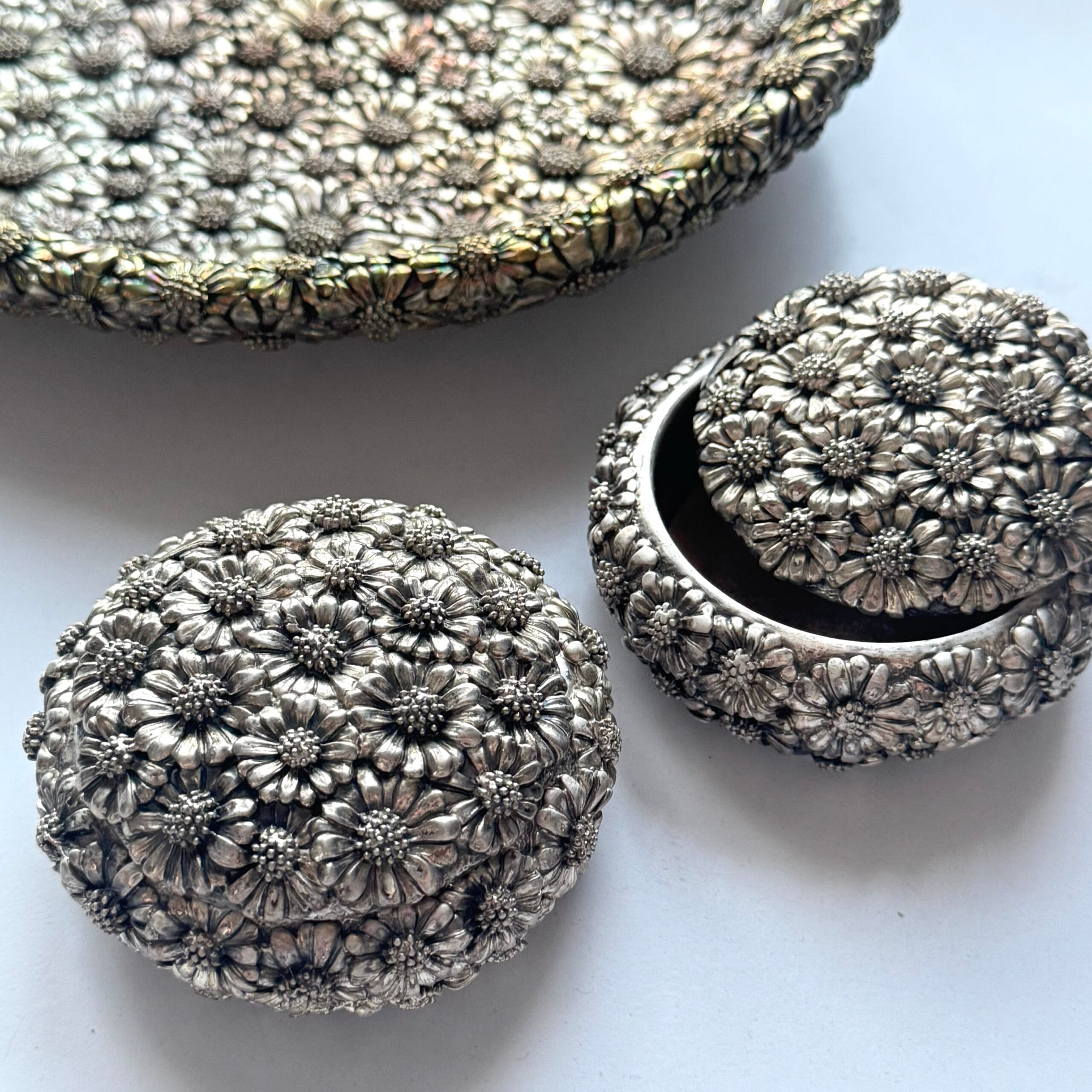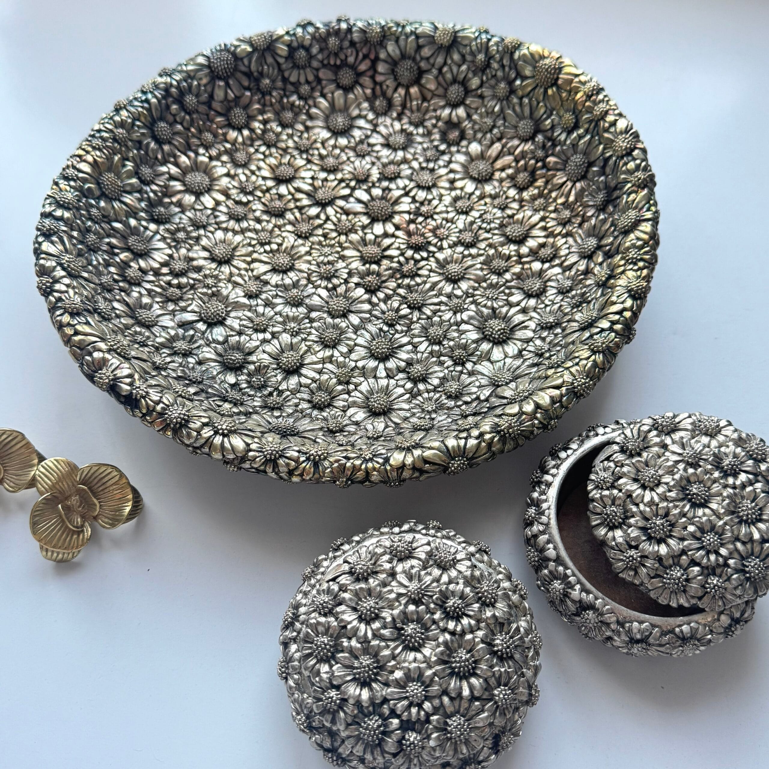 Знаменитий Італійський вінтажний декор StilArte — luxury collection . Вишукані італійськи вінтажні декоративні предмети з серії “Маргаритки”, виготовлені з міді, покриті ламінатом срібла 925° (Laminato Ag 925) — традиційна італійська техніка якісного посріблення, що поєднує міцну основу та благородний вигляд срібла.
